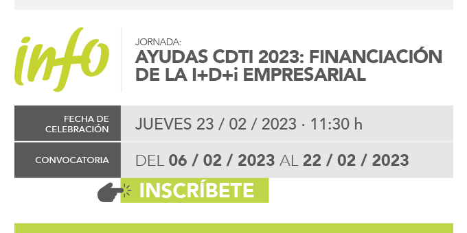 El Info, en el marco del convenio que tiene suscrito con CDTI, el Centro para el Desarrollo Tecnológico Industrial, organiza esta jornada para mostrar a empresas de todos los sectores cómo acceder a la financiación pública que gestiona este organismo para proyectos de I+D+i y conocer en profundidad las características y las ventajas que presentan estas ayudas. Empresas e investigadores de la Región de Murcia están invitados a participar en esta jornada, en la que contaremos con Carlos Franco, técnico del CDTI, que expondrá las novedades 2023 de los programas de ayudas que gestionan para proyectos empresariales de I+D+i.