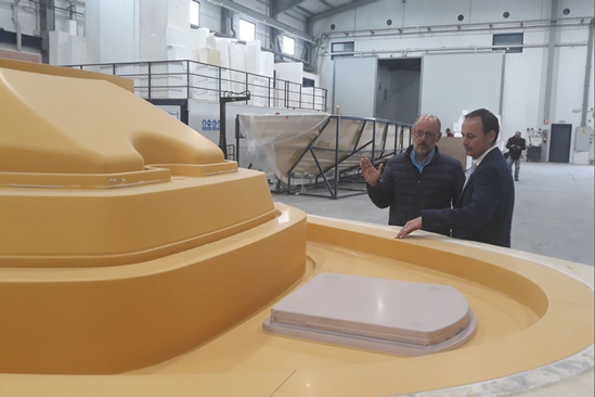 El consejero de Empleo, Universidades, Empresa y Medio Ambiente, Javier Celdrán, visitó esta mañana las instalaciones de la empresa Sinergia Racing Group (SRG), que está en pleno proceso de ampliación con el apoyo del Gobierno regional, con el fin de poner en marcha unas nuevas instalaciones en el Polígono Industrial de Los Camachos (Cartagena) que les permitirá fabricar un modelo de pala eólica de 71 metros, situándola en la vanguardia internacional.