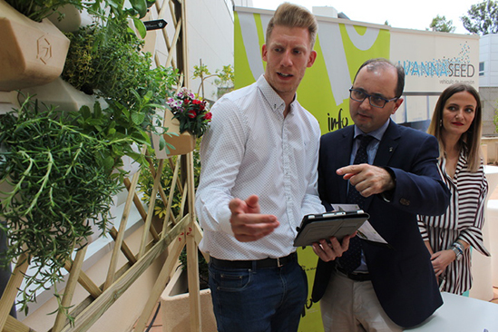 El director del Instituto de Fomento y presidente del Ceeim, Joaquín Gómez, se reunió recientemente con los responsables de Hexaradix, una empresa especializada en el diseño de maceteros inteligentes para jardines verticales que se ha convertido en la primera ‘startup’ participada por Wannaseed.