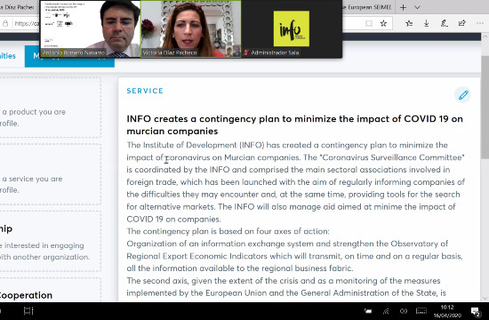 El Instituto de Fomento, presentó este jueves, a unas noventa empresas, la plataforma colaborativa internacional “Care & Industry together against CORONA” que tiene como objetivo poner en contacto empresas de toda Europa, que ofrezcan servicios o productos para afrontar la crisis de la pandemia del coronavirus, trabajando en la búsqueda de soluciones conjuntas de manera que el producto final sea puesto cuanto antes en el mercado y resulte más eficaz.